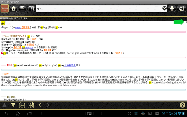 例えば、「go」は、内容が表示されるまでに15秒くらいかかります。(これは、私の「Xperia Tablet S」の場合で、CPU等端末の性能に依存すると思います)