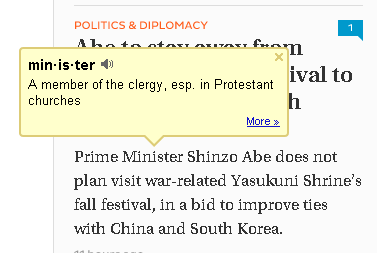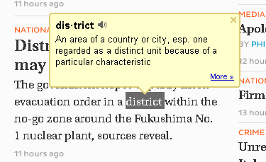 個人的には、マウスオーバー型の辞書は、マウスが上を通るだけで、表示されてしまい、逆に記事が読みにくなってしまうものがあるので、ダブルクリックや選択した時かを選べるのは、すごく気にいりました。