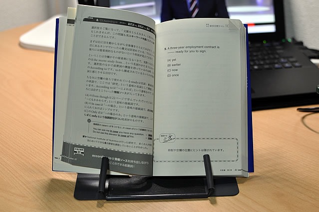 手前に見える小さな棒の部分は可動式でページを抑えられるようになっています。見えにくいですが、ゴムが被せてあり滑りにくくなっています。