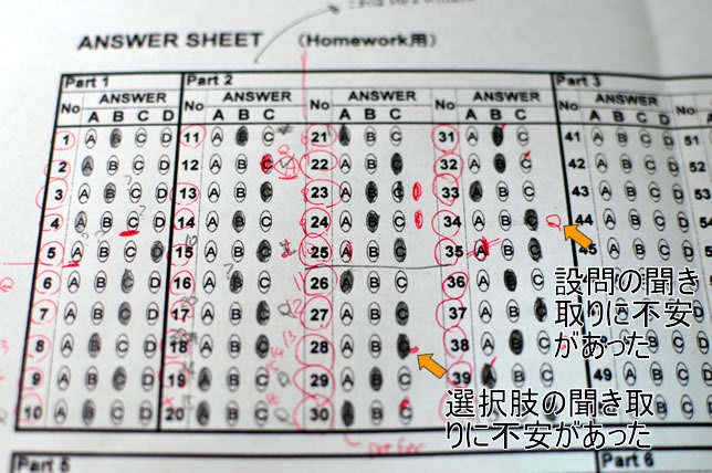 選択肢の聞き取りに不安がある所は、赤で点(・)をその選択肢の場所につけています。