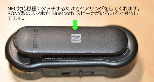 クリップの部分を NFC 対応の機器にタッチするとペアリングを行う事ができます。対応機器を持ってないので使ってませんが、ペアリングはそこそこ面倒なものなのでこれは便利だと思います。