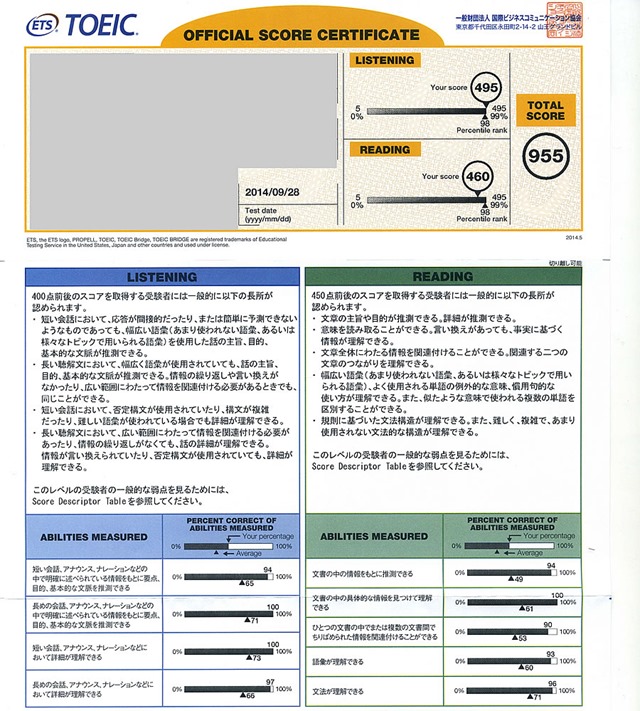 2014年TOEIC 9月公式テストの感想と結果